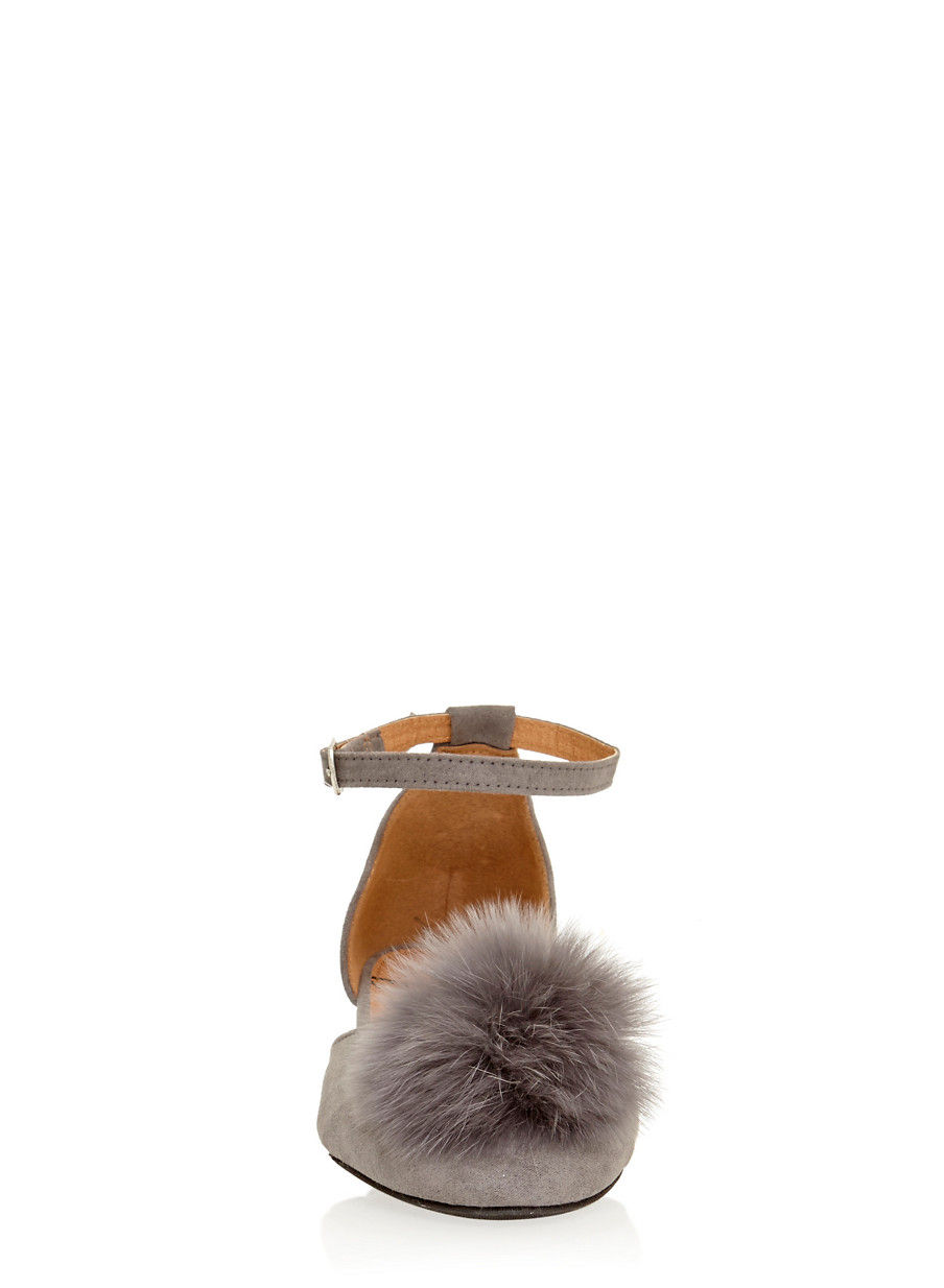 Faux Suede Mary Jane Flats with Pom Pom Detai